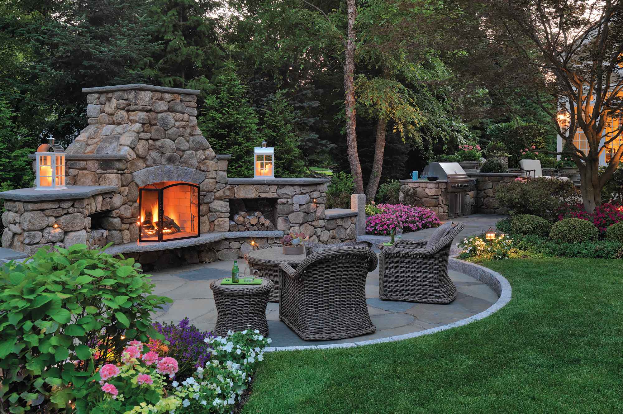 Sudbury Design Group’s masonry construction services are unrivaled in the Greater Boston area. Whether it is brick, granite, bluestone, cobble, concrete or antique stone, our licensed masonry contractors select the best materials and practice the most proven masonry techniques to create structures that are durable, timeless and unique to your home. Our skilled artisans are capable of constructing an endless variety of styles. Some of our finest masonry construction work includes walls, terraces, fire pits, outdoor kitchens, walkways and steps, pools, and more.